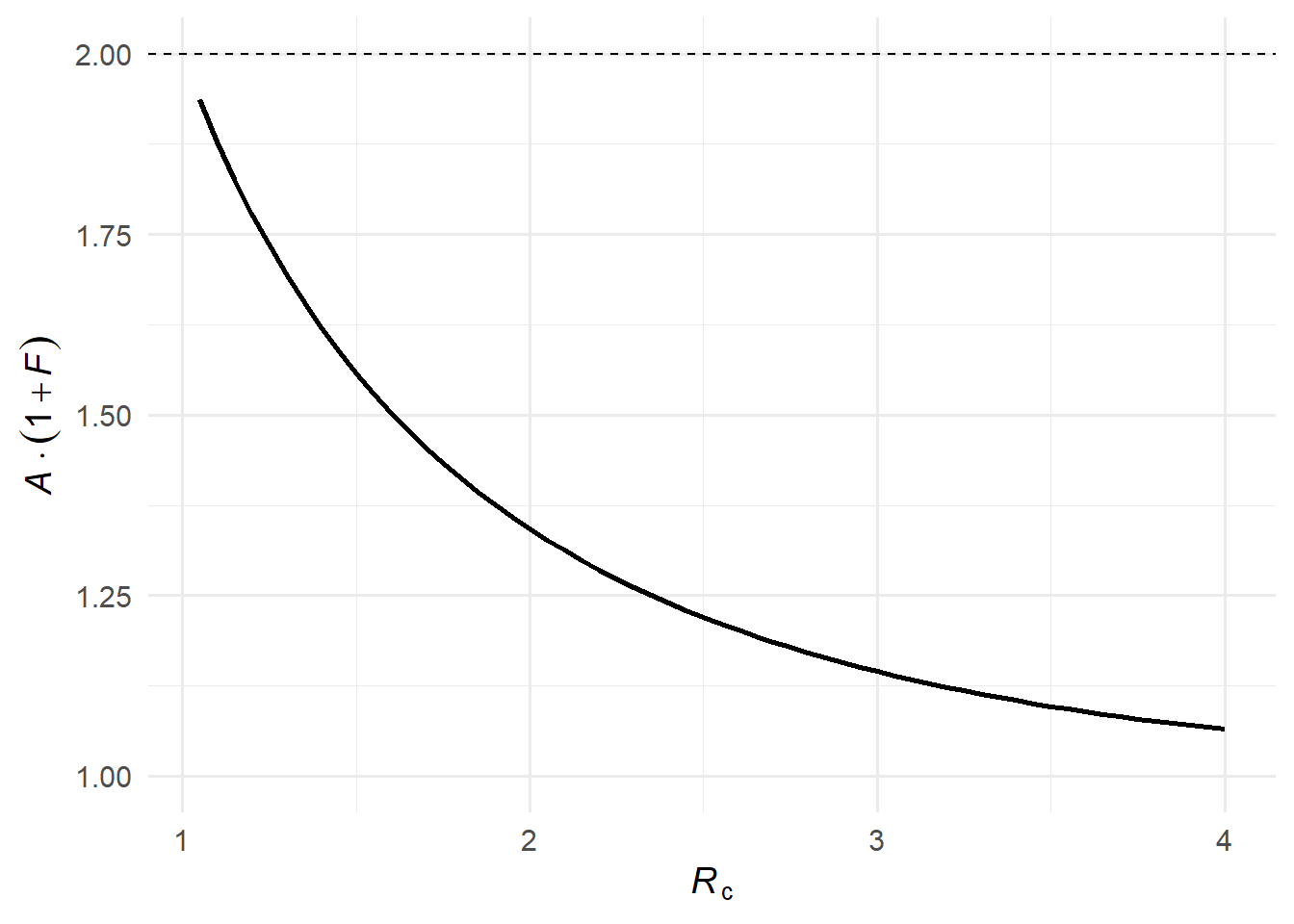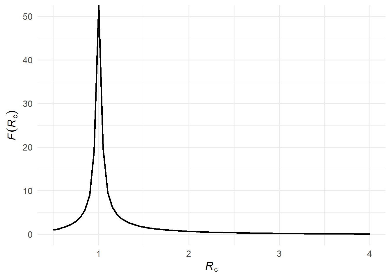 Each successive generation is \(\mathcal{R}_\infty\) times the size of the previous one; \(\mathcal{F}(\mathcal{R}_c)\) sums this over all generations.