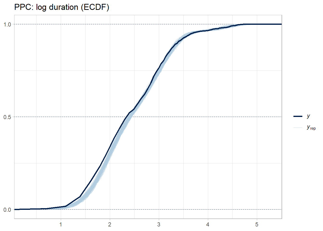 # ---- extract posterior draws (arrays) ----ex <- rstan::extract(fit, permuted =TRUE)# fixed effectsbeta_N <- ex$beta_N # draws × pNbeta_t <- ex$beta_t # draws × ptbeta_D <- ex$beta_D # draws × pDbeta_I <- ex$beta_I # draws × pI# residual SDssigma_N <- ex$sigma_N # drawssigma_t <- ex$sigma_tsigma_D <- ex$sigma_Dsigma_I <- ex$sigma_I# random effects (from transformed parameters)# u_reg: draws × 4 × R; u_cty: draws × 4 × Cu_reg <- ex$u_regu_cty <- ex$u_ctyn_draws <-nrow(beta_N)stopifnot(n_draws >0)