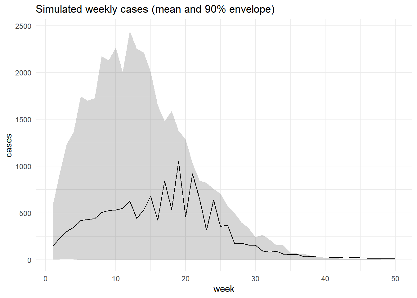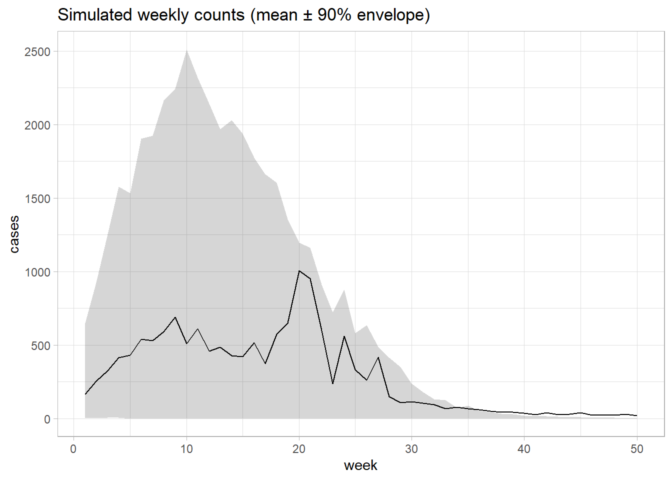 # 400 simulations for one stratumsim1 <-simulate_forward(n_sims =400, year =2015, region ="R2", country ="C5")# simulate with the empirical mix of (year, region, country) from your datakeys <- df %>%select(year, region, country) %>%slice_sample(n =1000, replace =TRUE)sim_meta <-simulate_forward(n_sims =nrow(keys),year = keys$year,region =as.character(keys$region),country =as.character(keys$country))