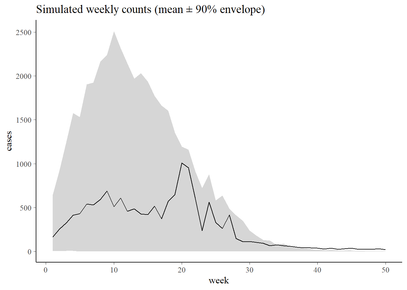 # 400 simulations for one stratumsim1 <-simulate_forward(n_sims =400, year =2015, region ="R2", country ="C5")# simulate with the empirical mix of (year, region, country) from your datakeys <- df %>%select(year, region, country) %>%slice_sample(n =1000, replace =TRUE)sim_meta <-simulate_forward(n_sims =nrow(keys),year = keys$year,region =as.character(keys$region),country =as.character(keys$country))